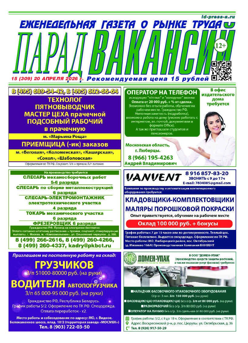ID-PRESS-A.RU — официальный сайт еженедельного цветного печатного издания по трудоустройству в Москве и Московской области "ПАРАД ВАКАНСИЙ". Периодическое издание о рынке труда, выходящее под постоянным названием "ПАРАД ВАКАНСИЙ", имеет формат А3, полноцвет. Территориально газета распространяется у станций метро Москвы, железнодорожных вокзалах и ключевых станций пригородного сообщения Московской области, выкладывается в МФЦ Московского региона. Тематика газеты "ПАРАД ВАКАНСИЙ" - вакансии и трудоустройство населения в Москве и Московской области.